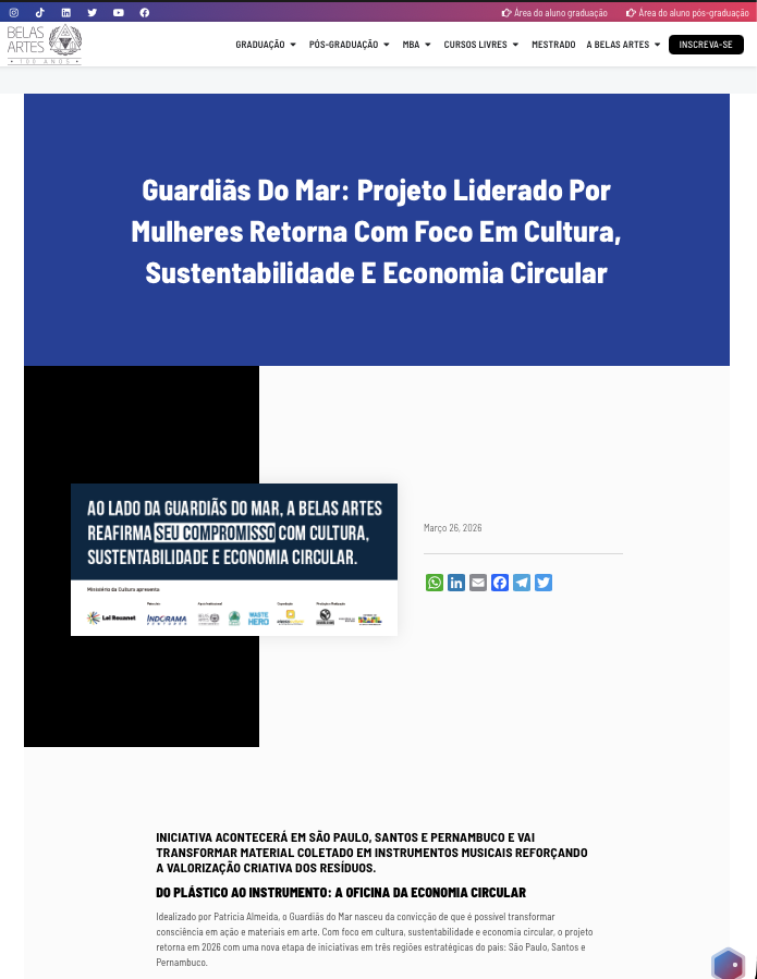 Somos uma plataforma nacional de impacto educacional criativa para transformação socioambiental, focada em aumentar soluções ESG através da arte.